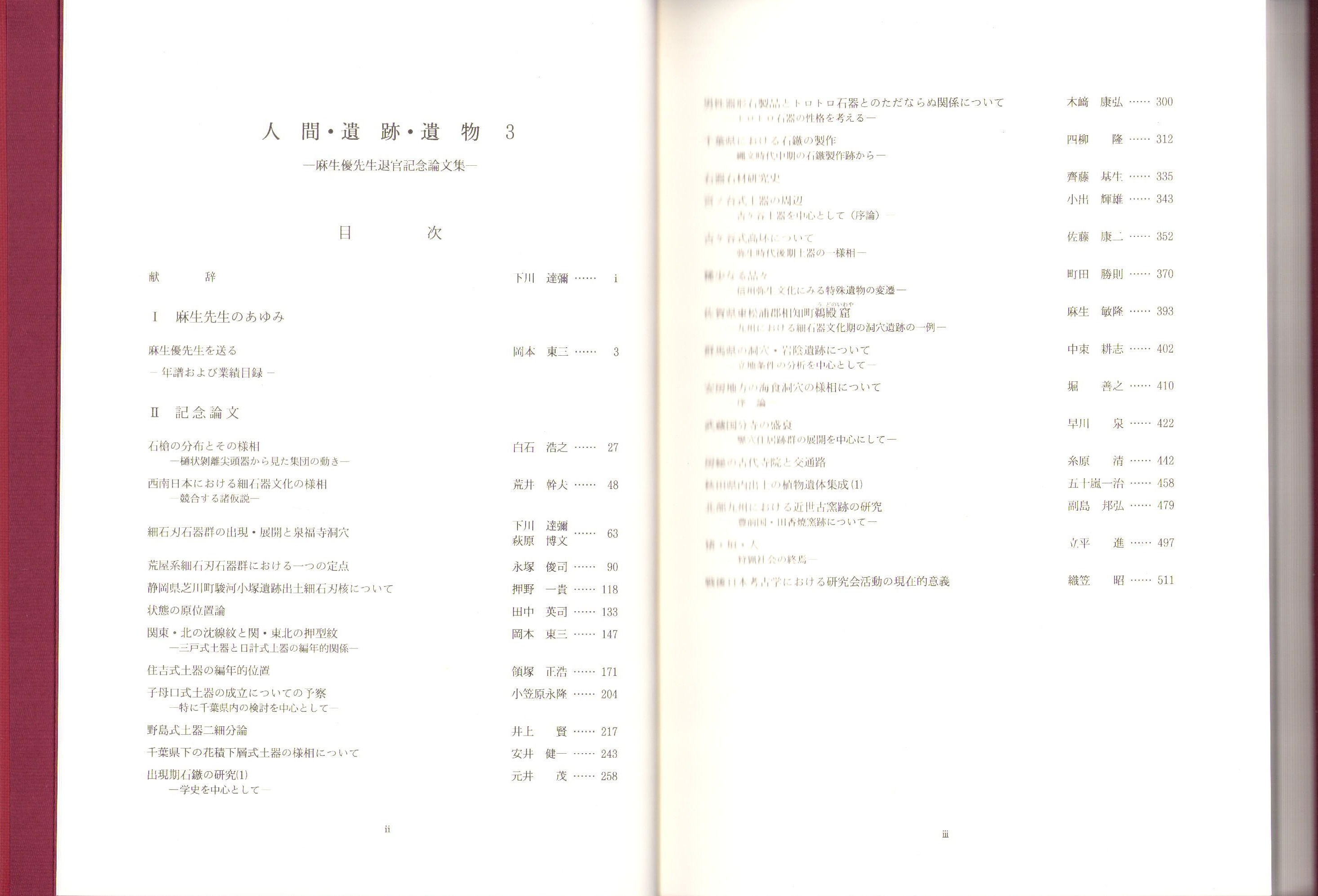 • 著者 〈人間・遺跡・遺物1 -わが考古学論集1- 麻生優・編、文献出版〉〈同2 -わが考古学論集2- 編集発行・発掘者談話会〉〈同3 -麻生優先生退官記念論文集- 編集・「人間・遺跡・遺物」編集委員会、発行・発掘者談話会〉