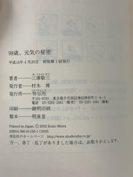 98歳、元気の秘密 祥伝社 三浦 敬三