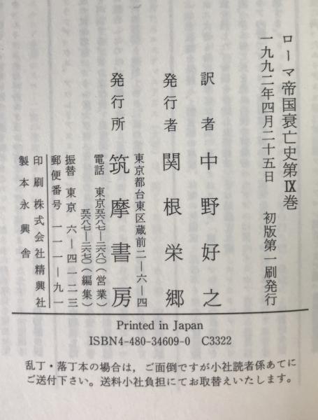 ローマ帝国衰亡史 第9巻 初版第1刷