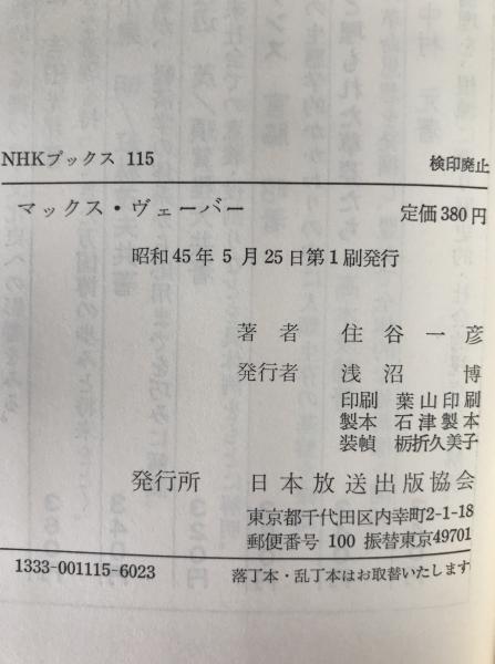 マックス・ヴェーバー : 現代への思想的視座 <NHKブックス 115> 第1刷