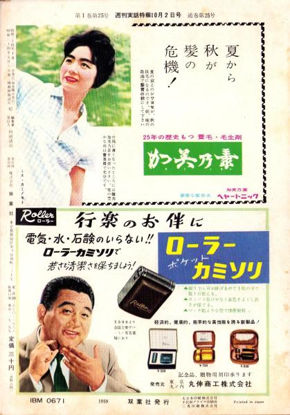 週刊実話特報 昭和34年10月2日号 表紙モデル・馬淵晴子