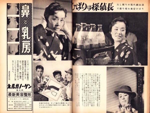 • 著者 〈10年の壁を破る香川京子 モノクロ4頁〉〈久し振りの現代劇出演で張り切る美空ひばり モノクロ2頁〉〈新人フラッシュ -三田佳子(フリー)- モノクロ1頁〉〈巨人の悲願を背負藤田元司投手夫人 7頁〉〈結婚問題で大荒れの雪村いづみ一家 4頁〉〈計算された10日間の雲隠れ -ブルーリボン賞を狙う有馬稲子- 2頁〉〈兄の愛人を引きつぐドロンコ人生(作家・須田寅夫)5頁〉、清水正二郎、宮下幻一郎、山田風太郎