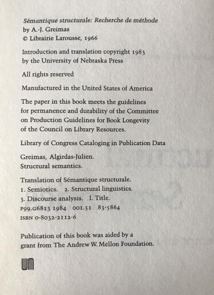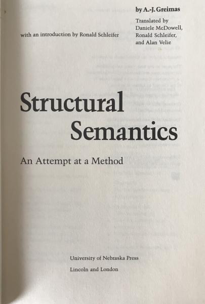 Semiotics Classic: STRUCTURAL SEMANTICS by A.-J. Greimas (1983 First English Edition) First English Edition