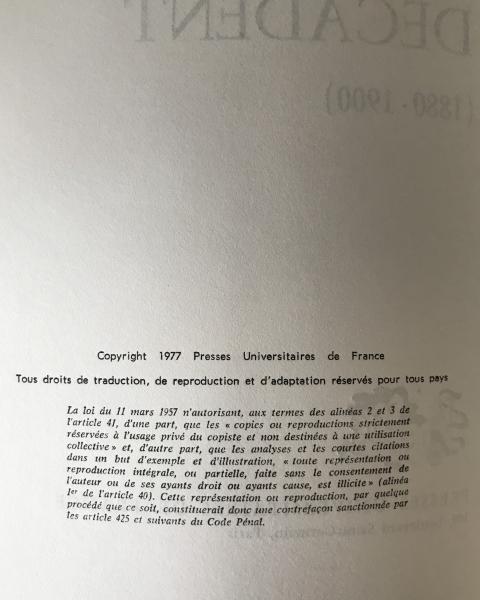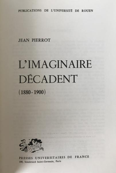 French Literary Classic: L'IMAGINAIRE DÉCADENT by Jean Pierrot (1977 PUF) First Edition