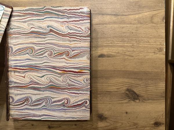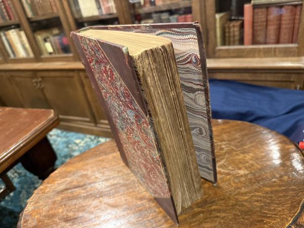 • 解説 Leather spine, corner and marble board binding, numerous illustrations in the text, stained and foxing, front cover almost detached, still a fair copy for reading only