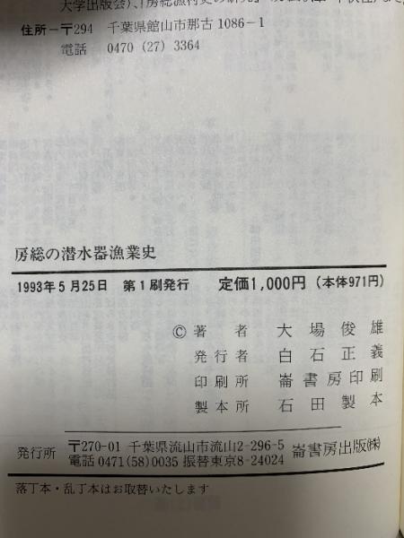 房総の潜水器漁業史 (ふるさと文庫) 崙書房出版 大場 俊雄