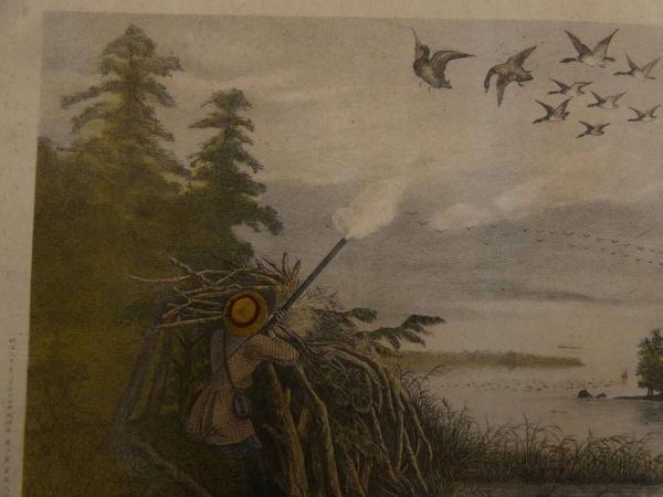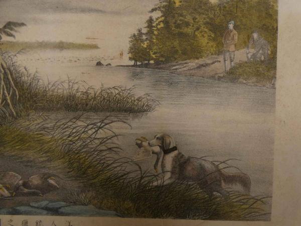 5 5 洋人銃猟之図 石版色刷 約35×47㎝