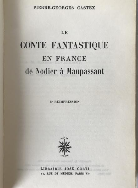 Pierre-Georges Castex: Le Conte Fantastique en France (1974 Corti Impression)