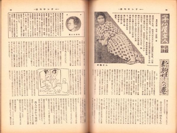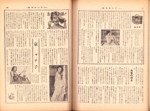 • 著者 〈対談「芋小屋主人連載対談 新駒姐さんの巻」5頁〉〈米軍女将校の性生活白書 5頁〉〈便所で殺された女 5頁〉〈近江俊郎「珍稿満筆 -レター禍-」1頁〉〈清川虹子「珍稿満筆 -私の風流譚-」1頁〉〈お色気診断 京マチ子 1頁〉、石塚喜久三