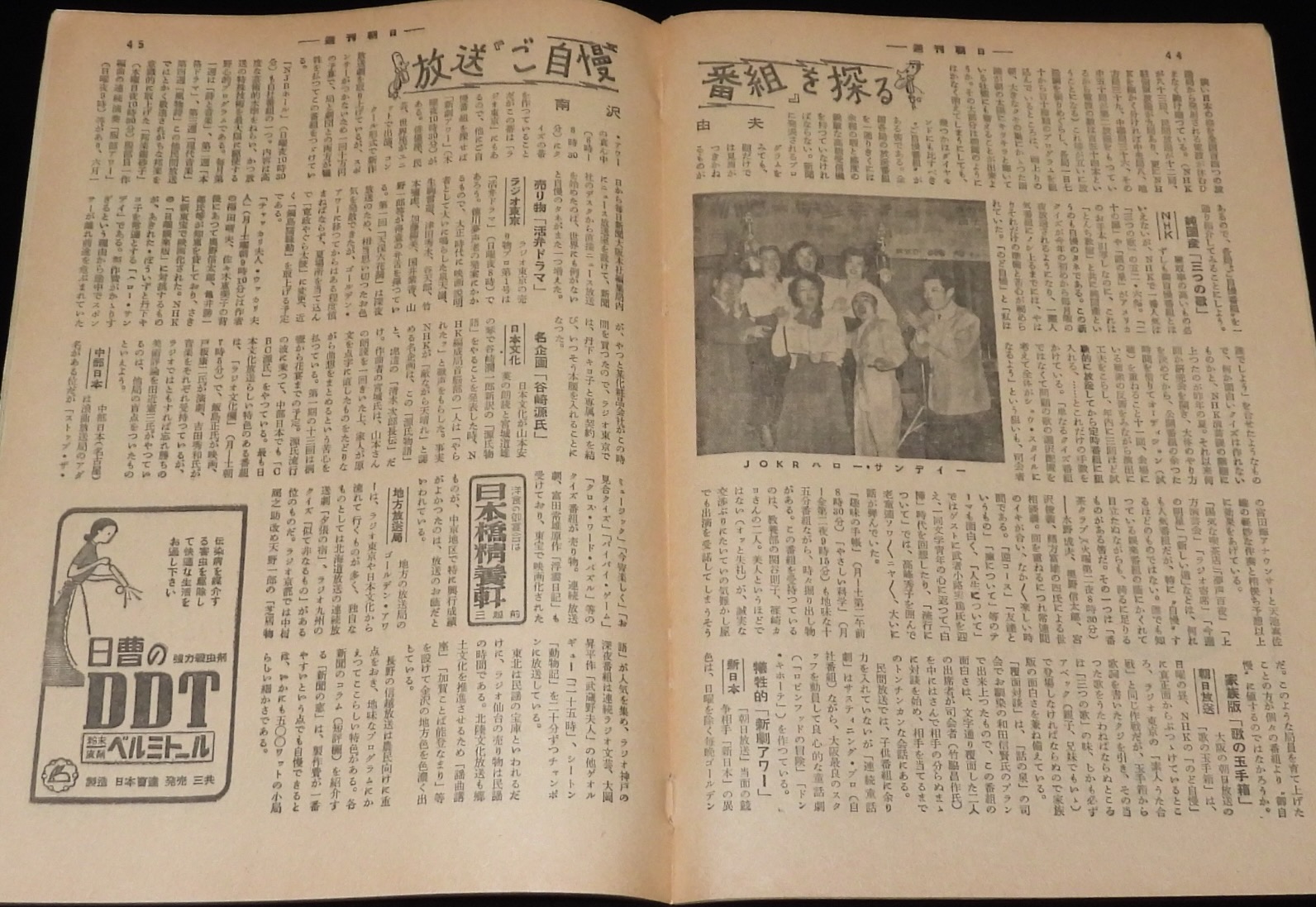 「放送ご自慢番組を探る:NHK/朝日放送/新日本/ラジオ東京/日本文化/地方放送局」