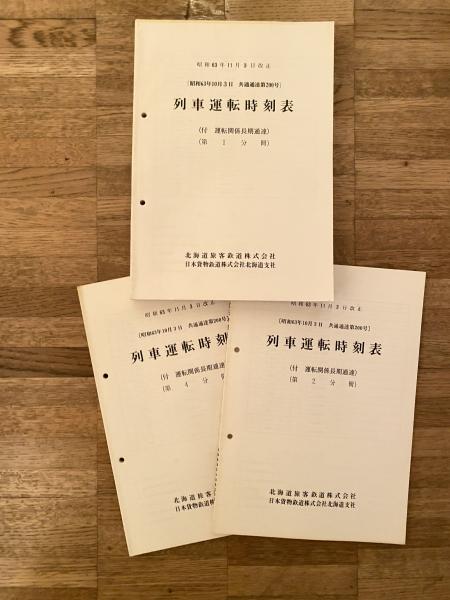 昭和63年11月3日改正 列車運転時刻表(昭和63年10月3日 共通通達200号) (付 運転関係長期通達) 第1分冊・第2分冊・第4分冊  3冊