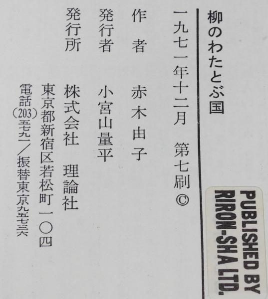 • 解説 ジュニア・ライブラリー 柳のわた とぶ国 赤木由子 理論社 1971年12月第7刷 A5判ハードカバー.
