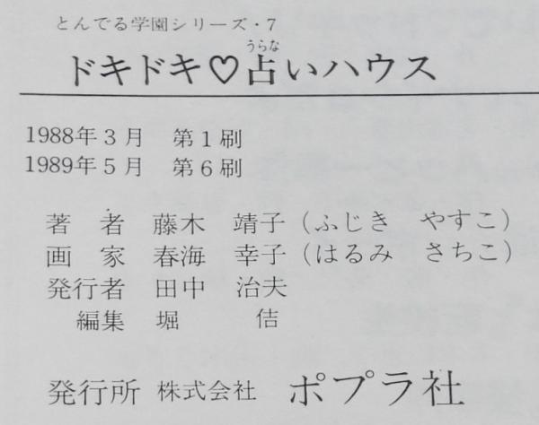 • 解説 ドキドキ占いハウス 藤木靖子 ポプラ社 1989年5月第6刷 A5判ハードカバー