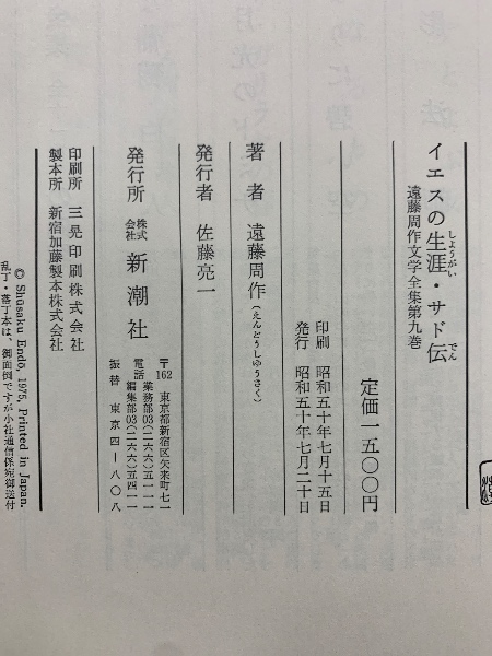遠藤周作文学全集 第9巻  イエスの生涯・サド伝