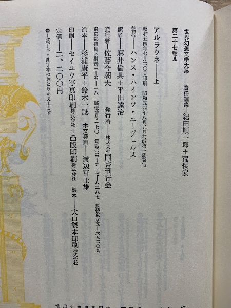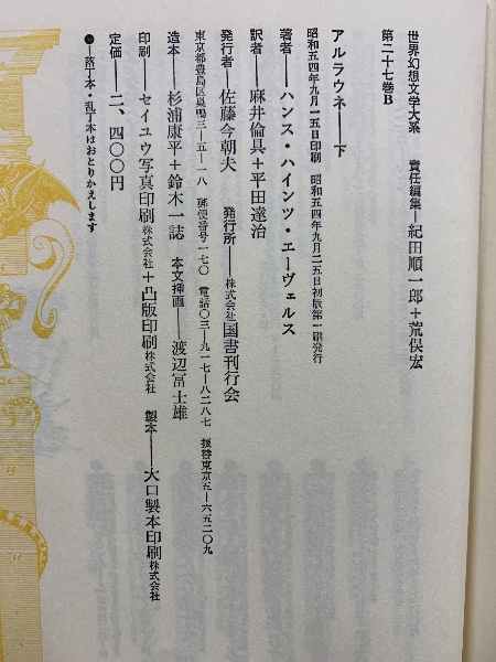 世界幻想文学大系 27 A・B アルラウネ 上下揃
