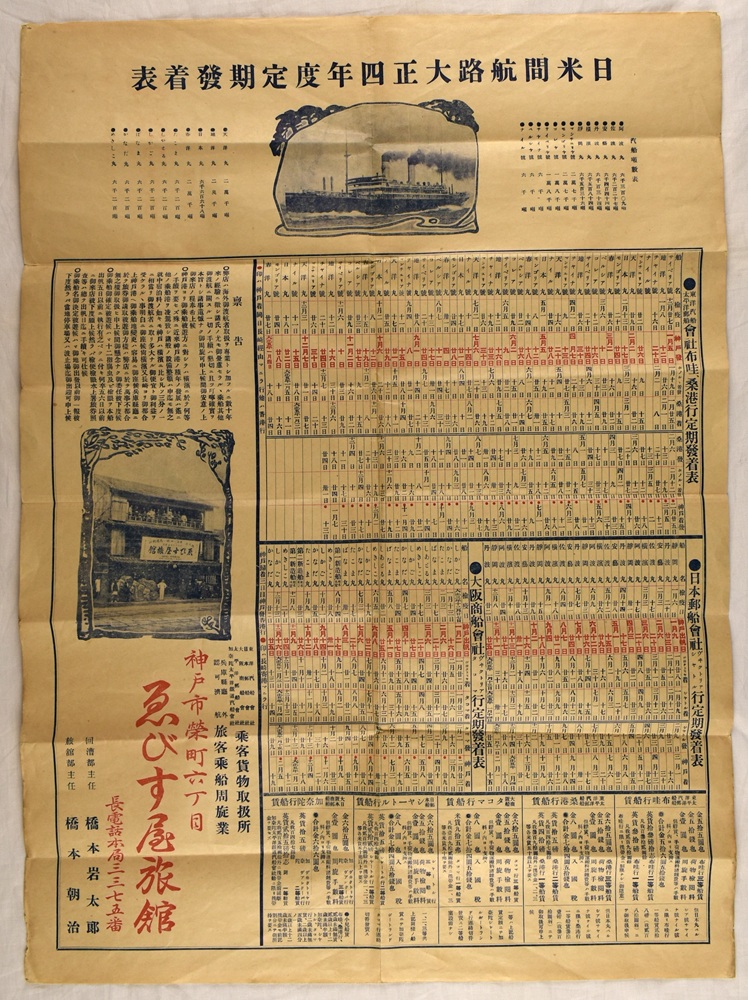 日米間航路大正四年度定期発着表