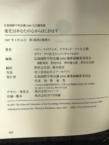 広島国際平和会議2006公式議事録 ココノール ベティ ウィリアムズ/ダライ・ラマ14世/デズモンド ツツ大主教