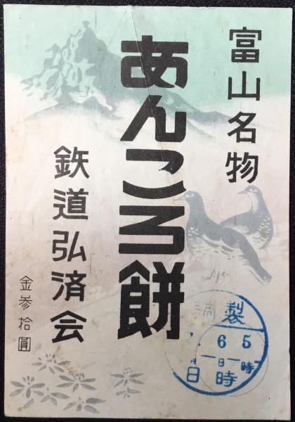〈駅弁票・駅弁掛け紙〉富山駅 鉄道弘済会 富山名物 あんころ餅
