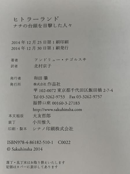 ヒトラーランド――ナチの台頭を目撃した人々 作品社 アンドリュー・ナゴルスキ