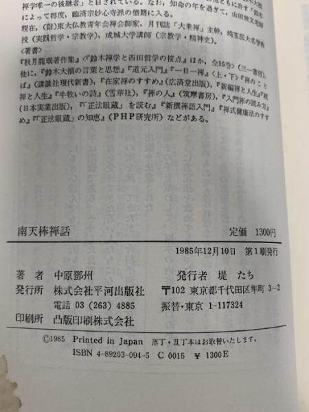 南天棒禅話 (秋月龍みん禅書復刻シリーズ 5) 平河出版社 中原 鄭州
