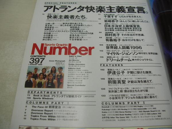 Number 397 ナンバー 1996年08月01日発行 アトランタオリンピック 千葉すず+青山綾里 表紙 岩崎恭子 山田海蜂 鹿島瞳  水泳 競泳 シンクロ