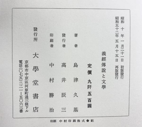 義經傳説と文學(全)大學堂書店 島津久基:著 市古貞次:解説 昭和52年 再版