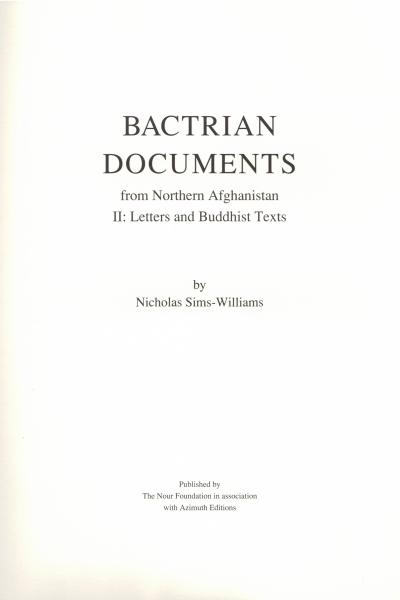 Bactrian Documents: From Northern Afghanistan; Ii: Letters and Buddhist Texts (Studies in the Khalili Collections)