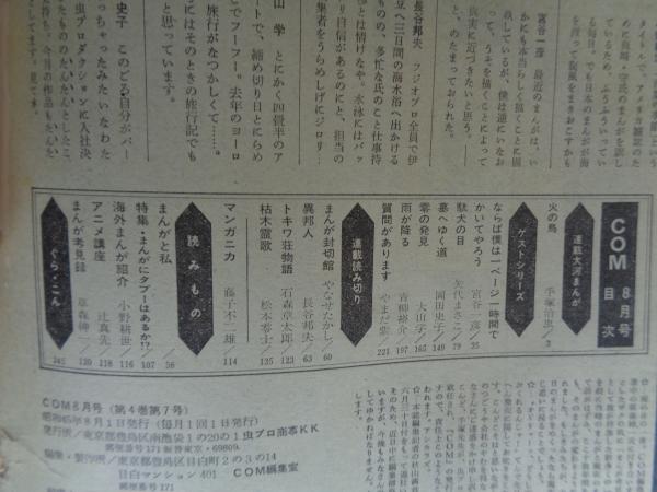 COM(こむ) 1970年8月号(第4巻第7号) ※第一回講談社出版文化賞 児童まんが部門受賞作「火の鳥」 ※「墓地へゆく道」岡田史子  第4巻第7号
