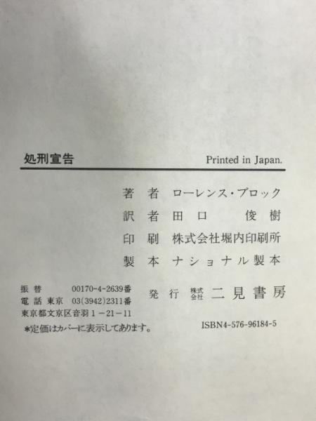 処刑宣告 二見書房 ローレンス ブロック