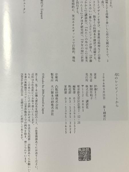 母のレシピノートから (講談社の実用BOOK) 講談社 伊藤 まさこ