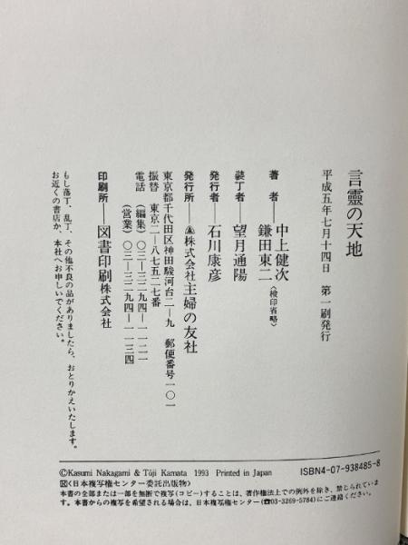 言靈の天地 主婦の友社 中上 健次