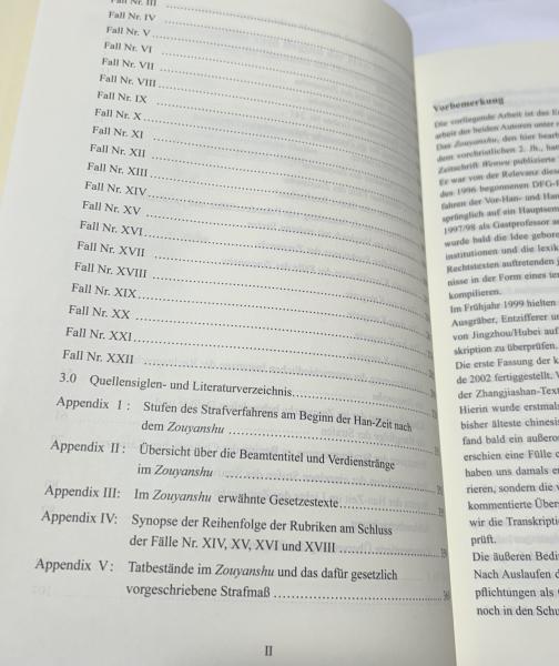 • 解説 ドイツ語 裸本 365頁 前漢初期の地方官僚の墓から出土した、秦代末期から漢初頭にかけての刑事事件の判例記録22件をまとめた「奏讞書」のドイツ語訳に注釈を加えたもの B5 ハードカバー