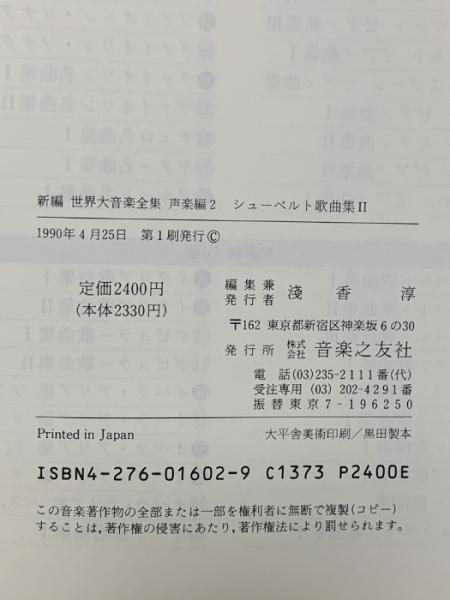 新編 世界大音楽全集 シューベルト歌曲集2 声楽編2 音楽之友社 シューベルト