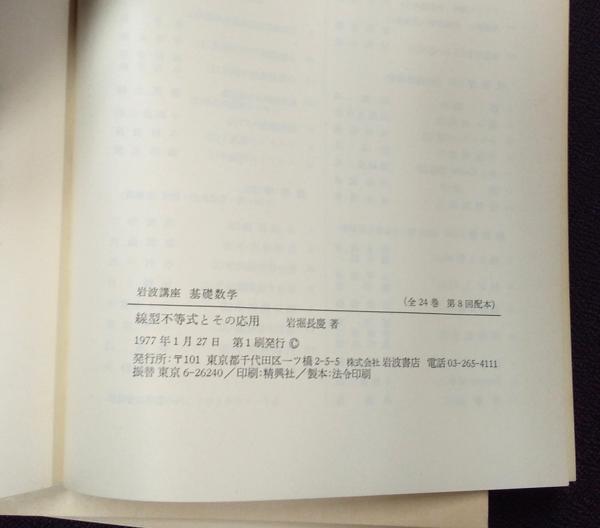 岩波講座 基礎数学8 線形不等式とその応用/保型関数1/非線型楕円型方程式/代数幾何学2