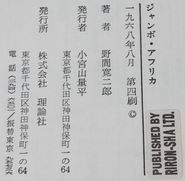 • 解説 ジュニア・ライブラリー ジャンボ・アフリカ 野間寛二郎 理論社 1968年8月第4刷 A5判ハードカバー.