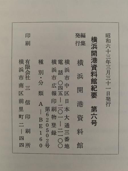 横浜開港資料館紀要 第6号 昭和63年3月