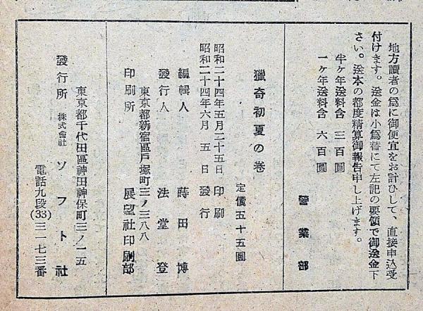 猟奇・初夏の巻 昭和24年6月 カストリ雑誌