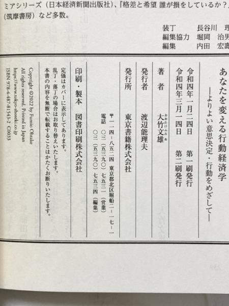あなたを変える行動経済学:よりよい意思決定・行動をめざして 東京書籍 大竹 文雄