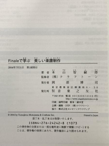 Finaleで学ぶ 美しい楽譜制作 音楽之友社 本山智嗣郎