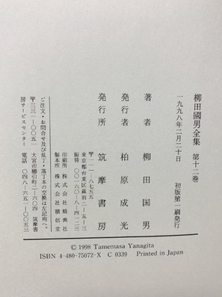 柳田國男全集 12 野草雑記・野鳥雑記・豆の葉と太陽・こども風土記・菅江真澄 筑摩書房 柳田 国男