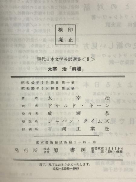 斜陽―英和対照 原書房 太宰治 ドナルド・キ-ン