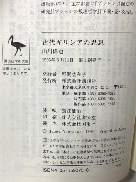 古代ギリシアの思想 (講談社学術文庫 1075) 講談社 山川 偉也