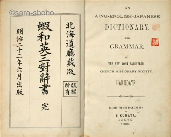 • 著者 バチェラー 北海道庁版 熊田宣遜印刷