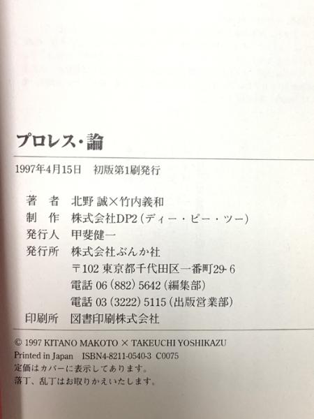 プロレス・論 ぶんか社 北野 誠