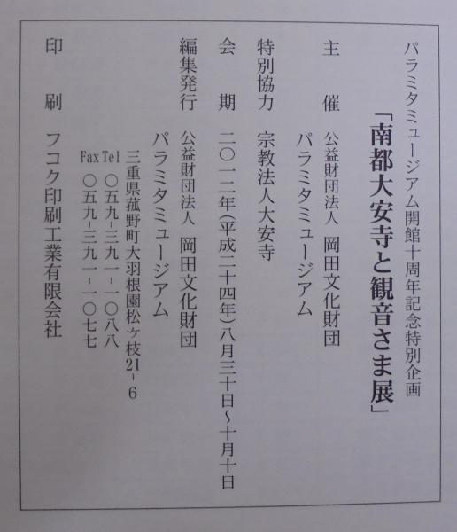 南都大安寺と観音さま展 : パラミタミュージアム開館十周年記念特別企画 祈りと救いの美