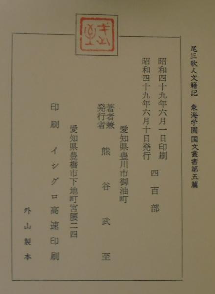 尾三歌人文籍記 <東海学園国文叢書 第5篇>