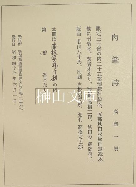 閒適集 高梨一男肉筆詩集 漆板家蔵十部本 若山八十氏版画入