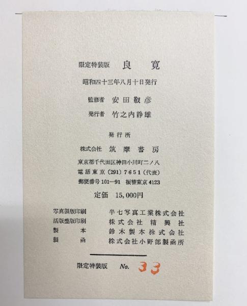 [良寛]【限定特装版/No.33】筑摩書房 安田靫彦 昭和43年