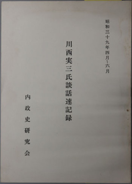 川西実三氏談話速記録(内務官僚) 昭和39年4月~6月