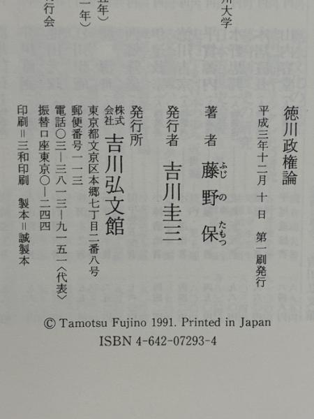 徳川政権論 吉川弘文館 藤野 保